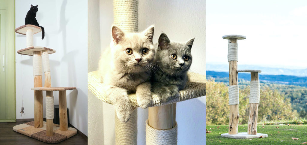 Neben unserem Katzenspielzeug stellen wir auch Naturkratzbäume für Katzen her.