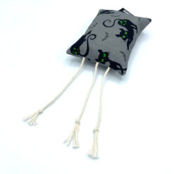 Auch hier benutzen wir keinen Klebstoff: Die Schnüre sind mehrfach vernäht anstatt verklebt und somit ist unser Spielspaß für Katzen wesentlich stabiler als herkömmlichere Spielzeuge.
