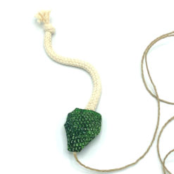 Auch hier benutzen wir keinen Klebstoff: Die Schnüre sind mehrfach vernäht anstatt verklebt und somit ist unser Spielspaß für Katzen wesentlich stabiler als herkömmlichere Spielzeuge.