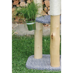 → Dieser catzup-Kratzbaum hat eine Halterung für Katzengras montiert.